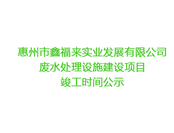 惠州市鑫福來實業發展有限公司 廢水處理設施建設項目竣工時間公示